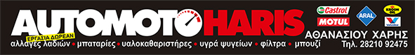 Προσφέρουμε για το αυτοκίνητο και την μοτοσυκλέτα σας:Αλλαγή λαδιών, Φίλτρα λαδιών, Νερά ψυγείου, Μπαταρίες, Μπουζί, Υαλοκαθαριστήρες