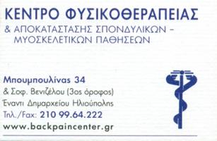 Αθλητικές κακώσεις, κατάγματα, νευρολογικές παθήσεις, παθήσεις σπονδυλικής στήλης, manual therapy.Καθημερινά με ραντεβού.