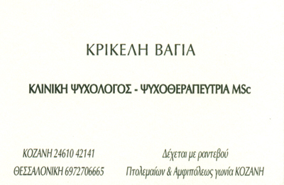 Η κλινική ψυχολόγος Βάγια Κρικέλη δέχεται μόνο με ραντεβού