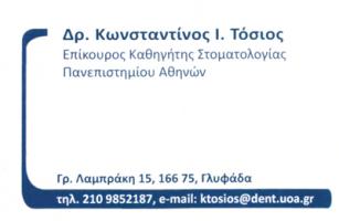Ο Δρ. Κων/νος Ι. Τόσιος αποφοίτησε από την Οδοντιατρική Σχολή του Εθνικού και Καποδιστριακού Πανεπιστημίου Αθηνών το 1988, όπου ολοκλήρωσε τις μεταπτυχιακές του σπουδές και αναγορεύθηκε διδάκτορας το 1996.
